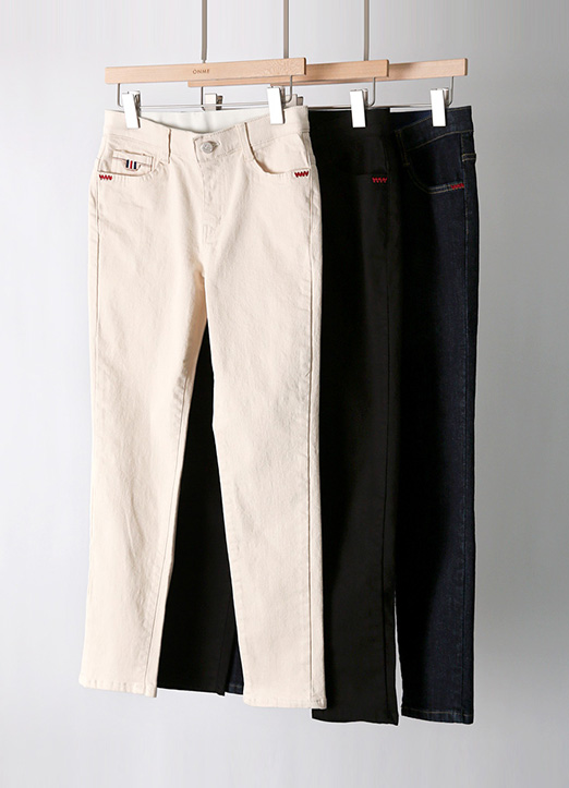 [루이스엔젤] 렌디오 스판 자수 패치 슬림 일자 팬츠