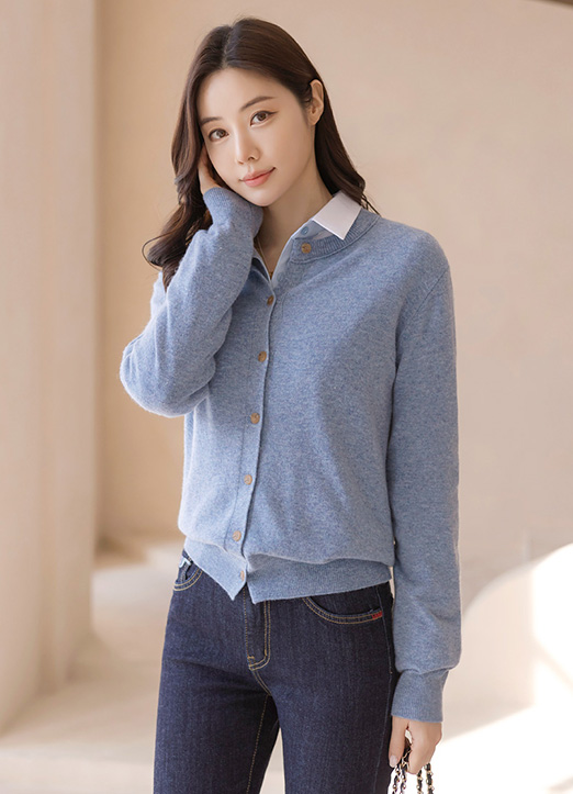 데일리 베이직 캐시미어 파인울 라운드 니트 가디건