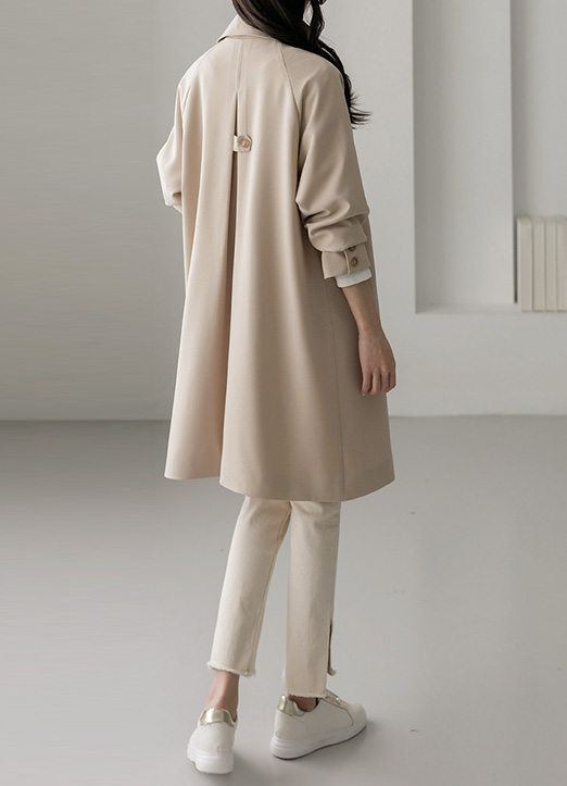 세미드 비조 뒷면 맞주름 핀턱 A라인 롱 트렌치 자켓