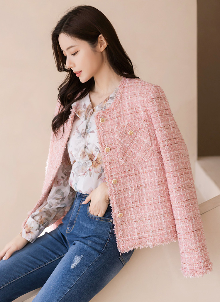 부담없는 두께감으로 간절기에 제격인 트위드 자켓이에요 :)