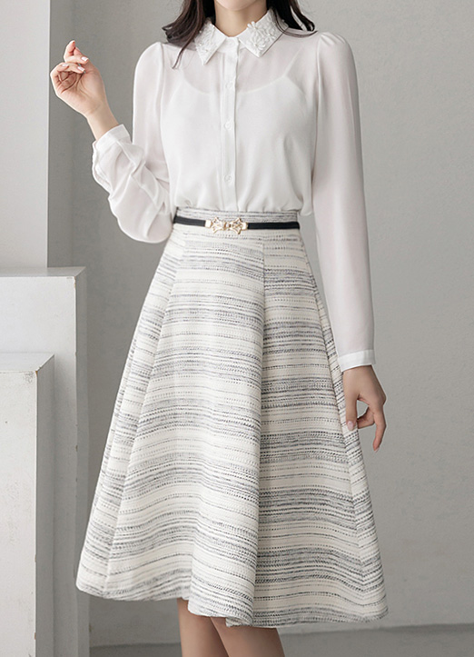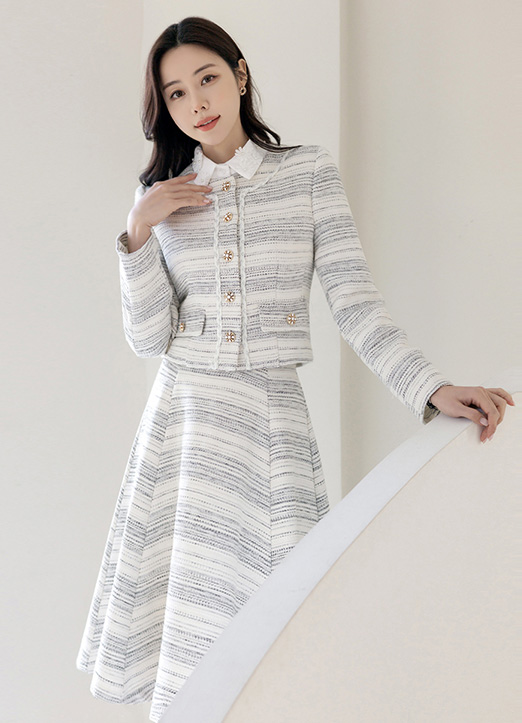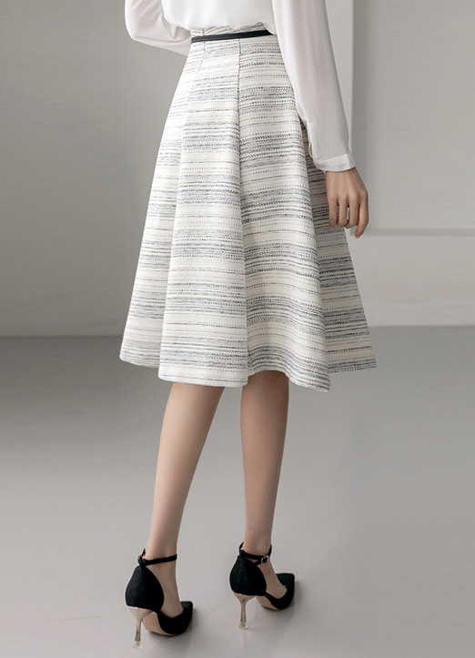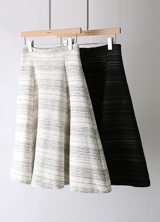 렐시아 스트라이프 텍스쳐 트위드 A라인 플레어 미디 스커트