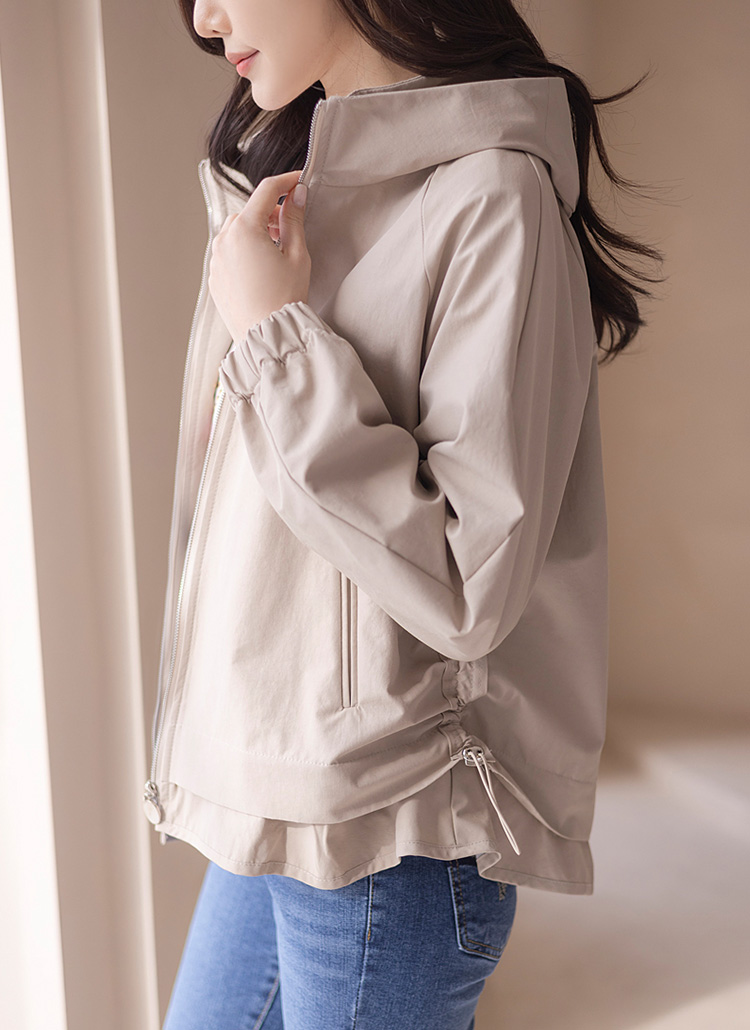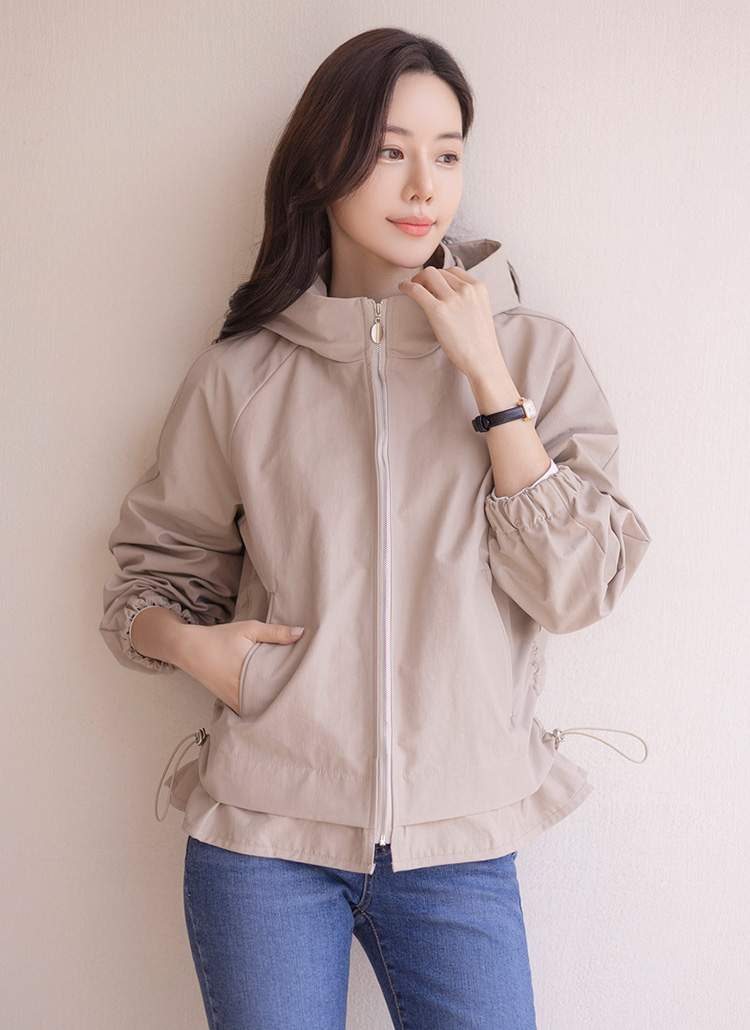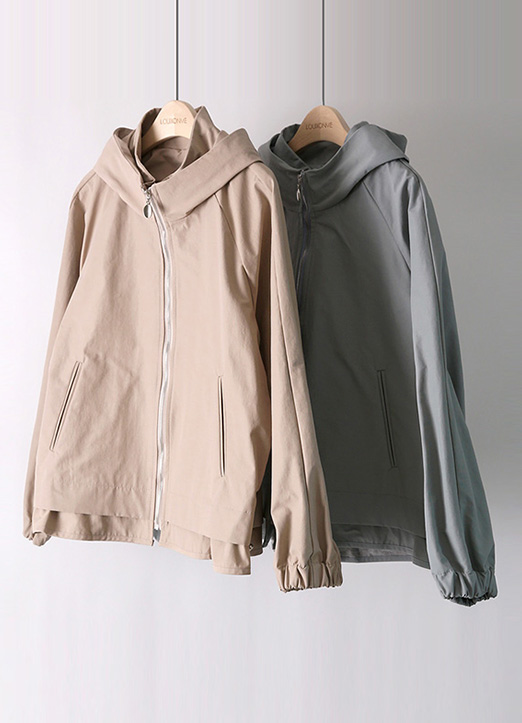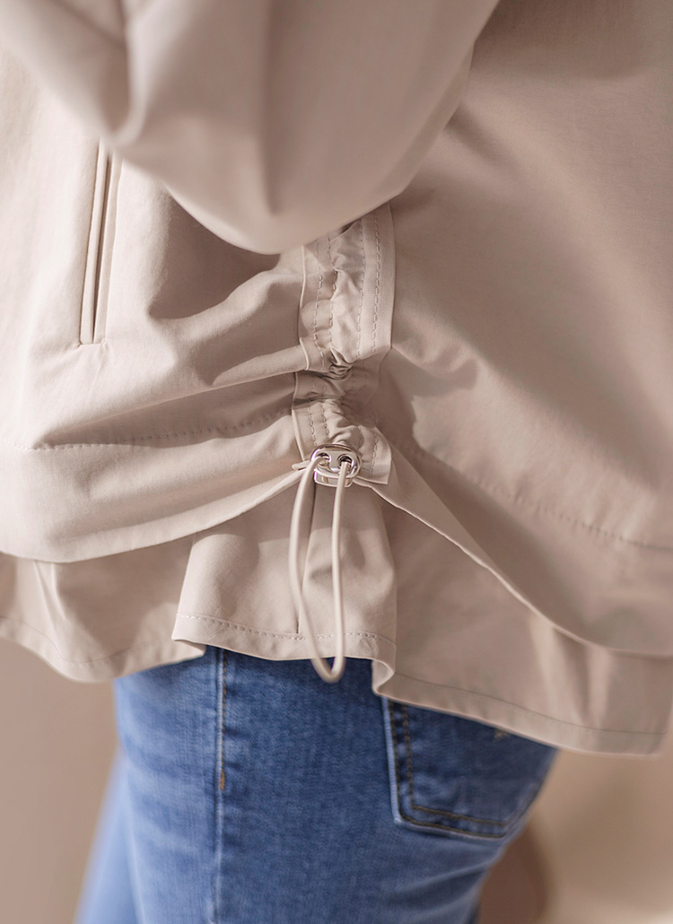 데오프 탄탄 코튼 나일론 스트링 셔링 후드 야상 점퍼