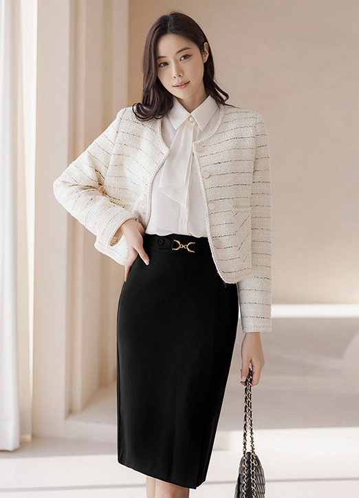 깔끔하게 툭 떨어지는 트위드 자켓이에요 :)