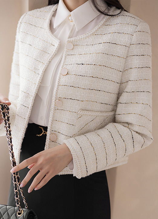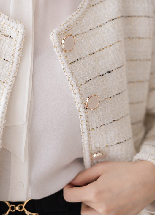 골드 스티치가 더해진 트위드 라인으로 처리해