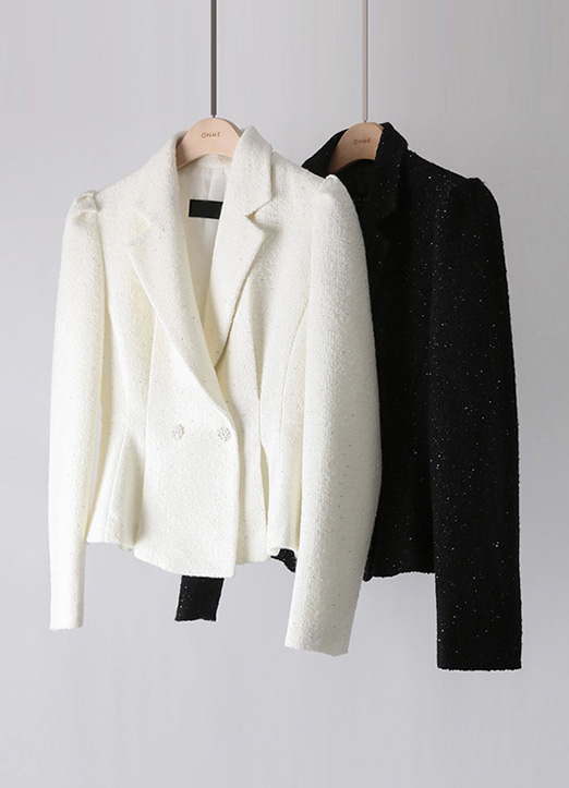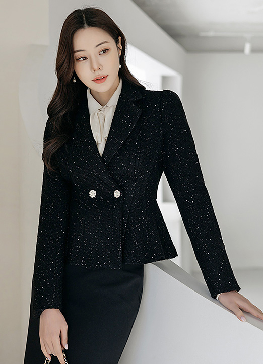 글로시 완벽라인 울 블렌딩 트위드 페플럼 자켓