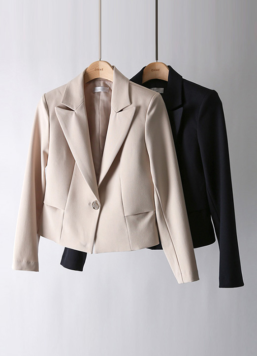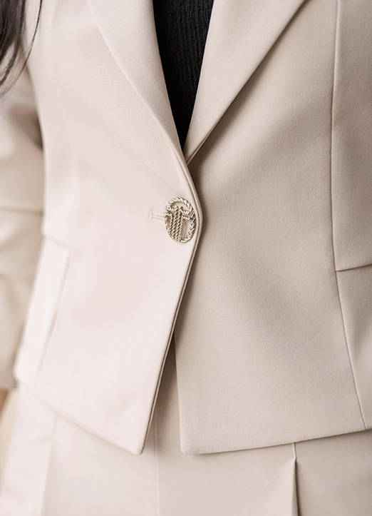 세닐르 원버튼 핀턱 절개 세미크롭 자켓