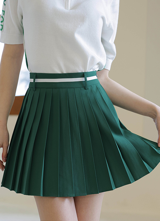 [QoG] 골프 기능성 허리배색라인 플리츠 스커트_3color
