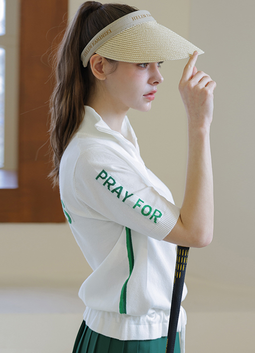 [QoG] 골프 백 레터링 스트링 반집업 반팔 니트_3color