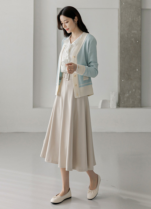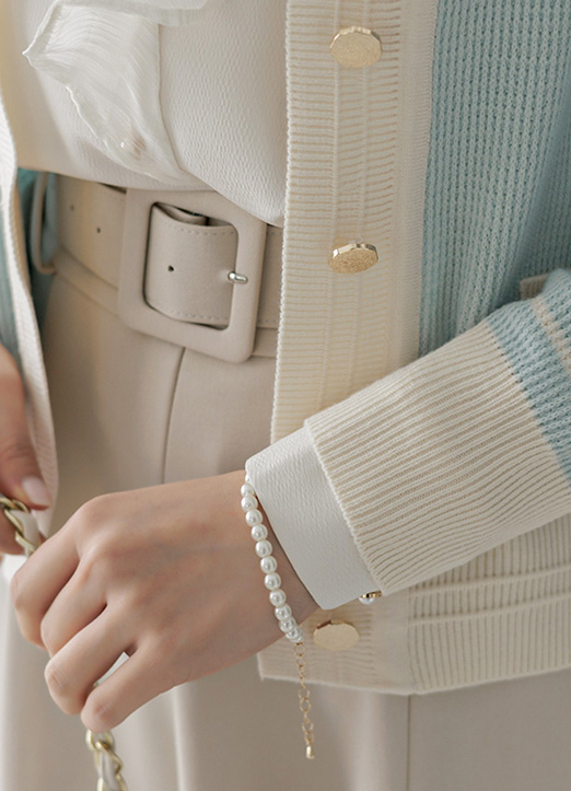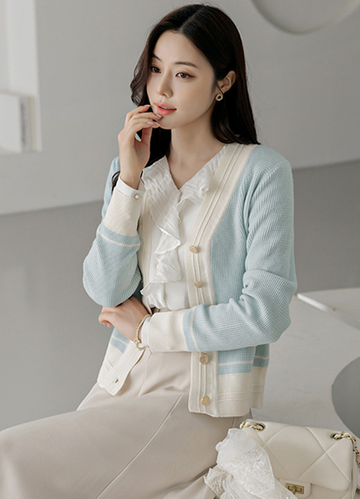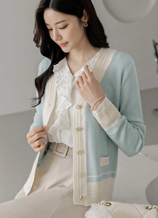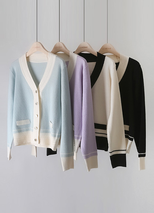 파스텔 데일리 배색 골드 버튼 니트 가디건