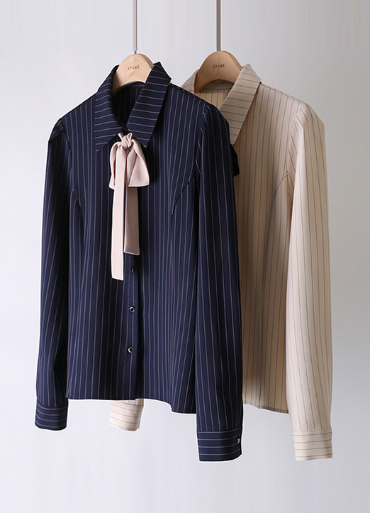 [LouisAngel] 세리아 배색 리본 타이 SET 셔츠 스트라이프 블라우스