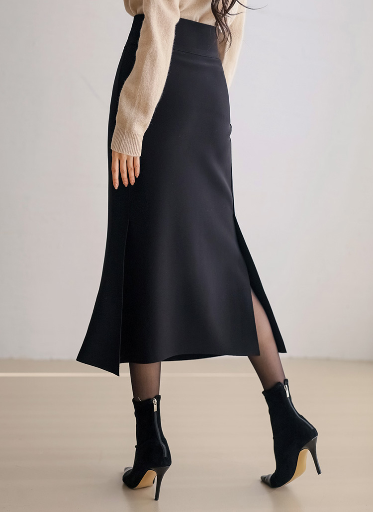 베이엘 언발 절개 쫀득 스판 머메이드 스커트