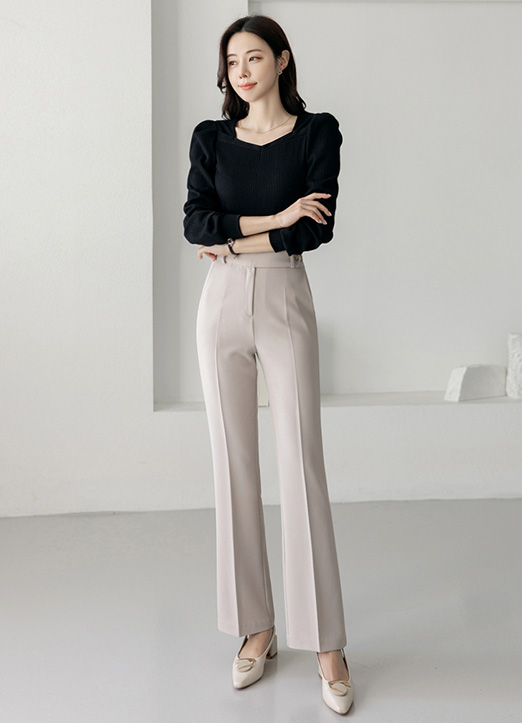 심플하게 포인트되어 모던하고 세련된 무드로 즐기시기 좋은 부츠컷 슬랙스에요