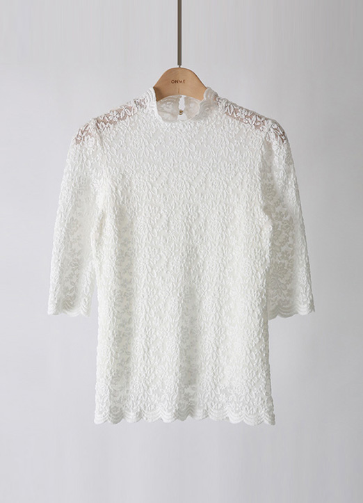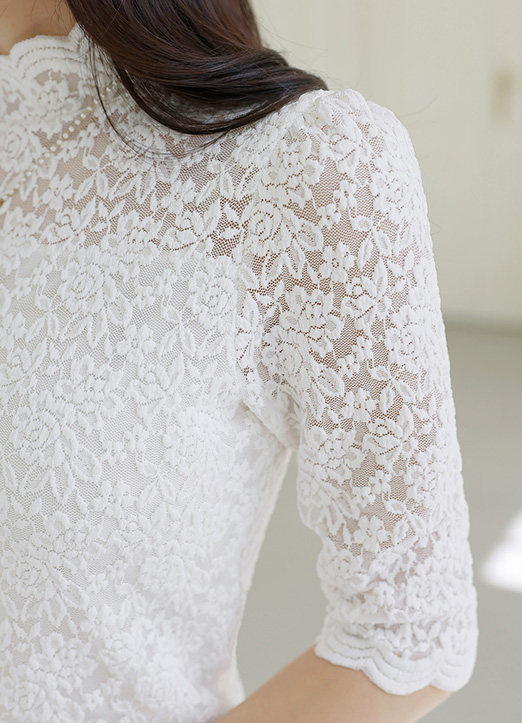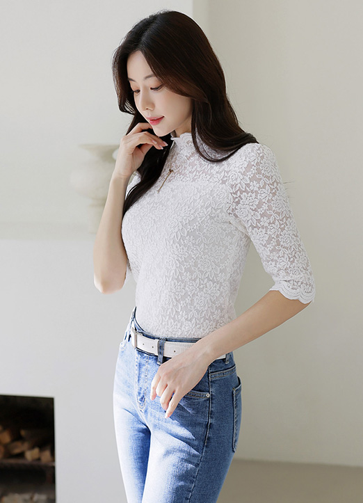 [LouisAngel] 로제스 반하이넥 7부 소매 레이스 블라우스 티