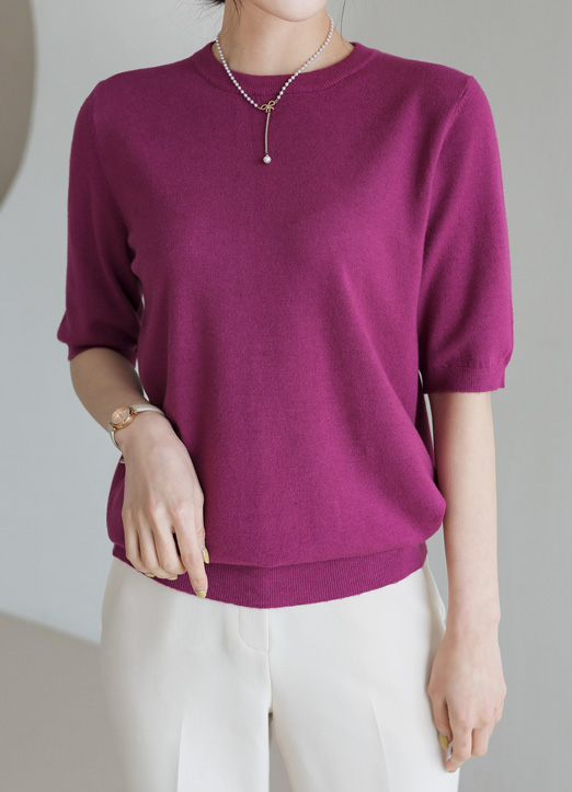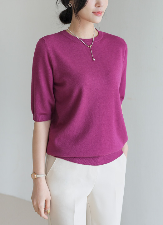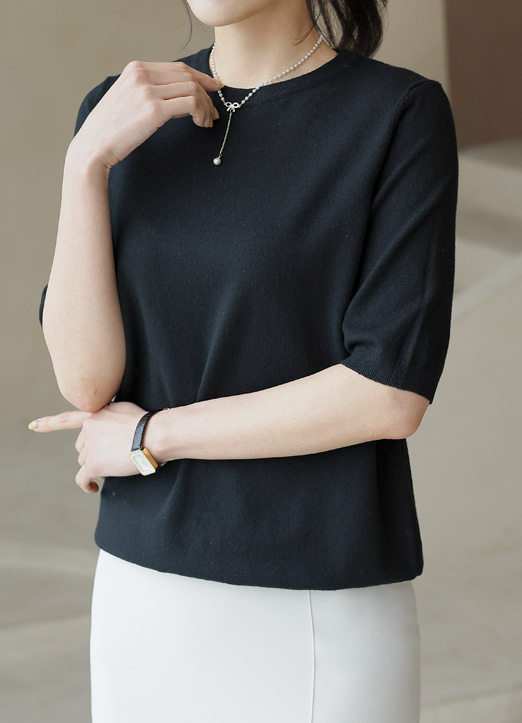 [Theonme] 극강의 터치감! 캐시미어 반팔 라운드 니트_19color