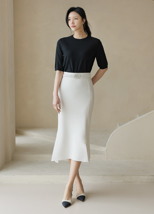 [Theonme] 탄탄 쫄깃한 텐션 언발 사이드 트임 롱 스커트