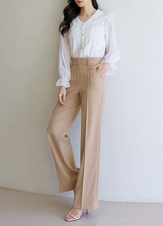 [LouisAngel] 모던클래스 절개 백스티치 세미 와이드 슬랙스 악마팬츠vol.119