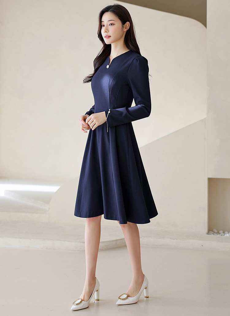 잘록한 허리라인을 잡아주어 우아한 플레어 원피스에요 :)