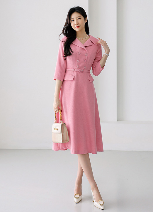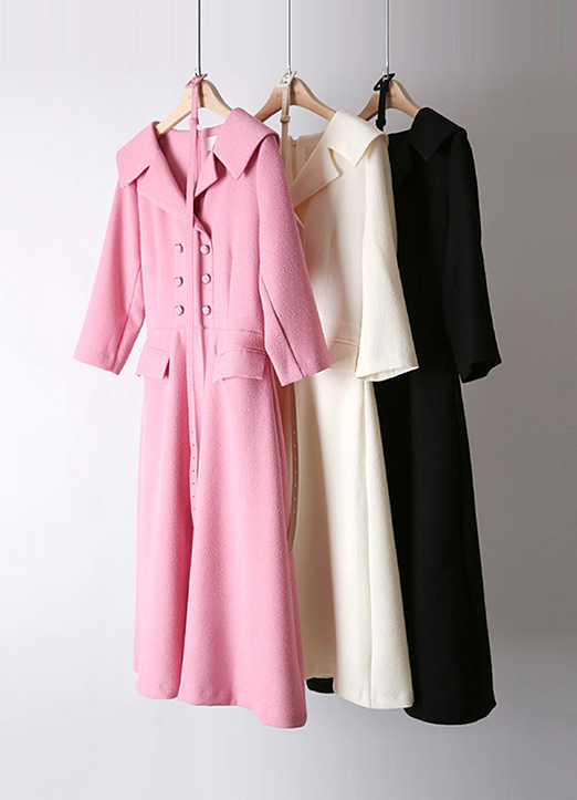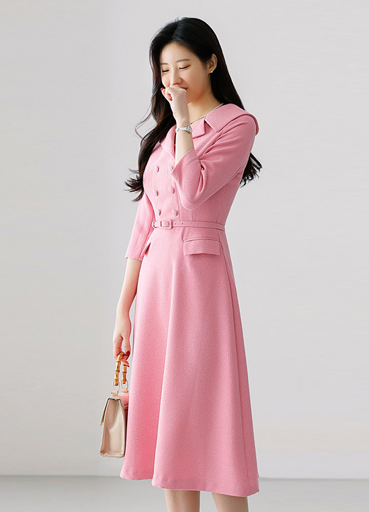 벨로드 벨트SET 세일러카라 더블버튼 플레어 원피스