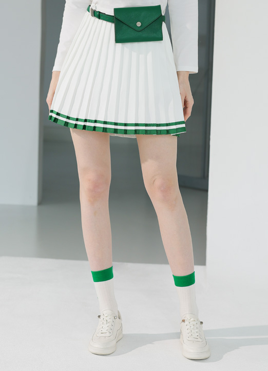 [QoG] 골프 배색 테이핑 플리츠 스커트_2color
