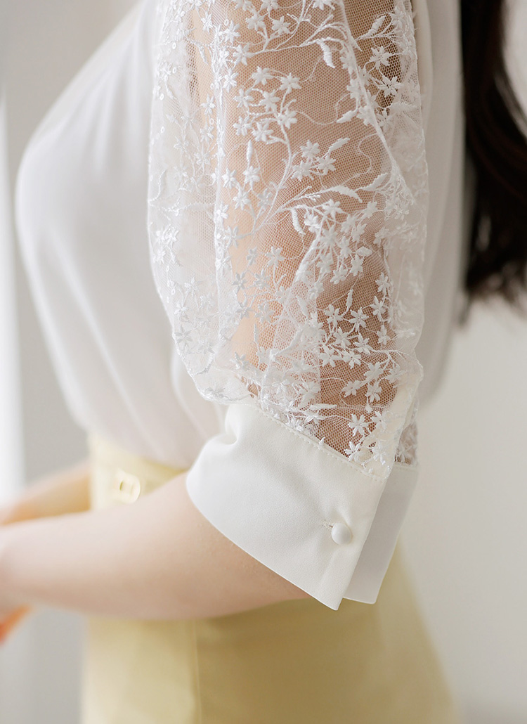 플라워 자수 레이스가 고급스러운 블라우스에요 :)