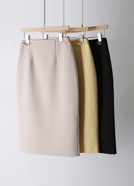셀리브 사이드 골드 버클 H라인 미디 스커트
