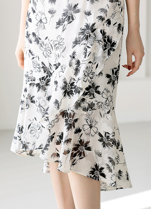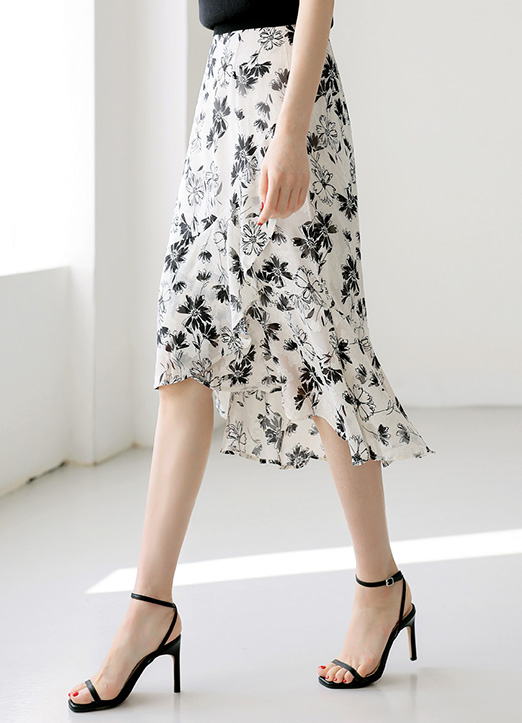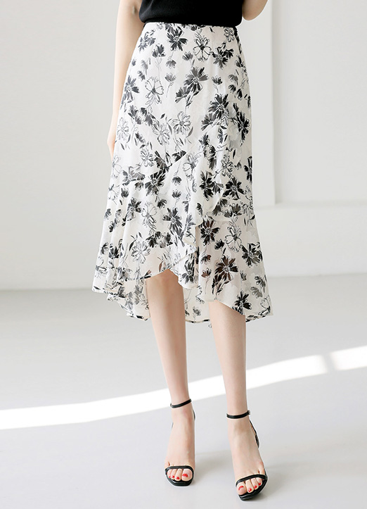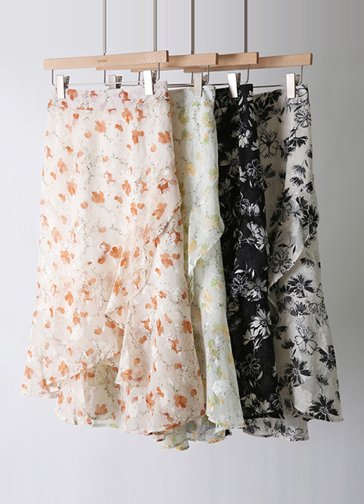 루이블 플라워 쟈가드 언발 랩 러플 스커트