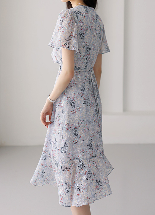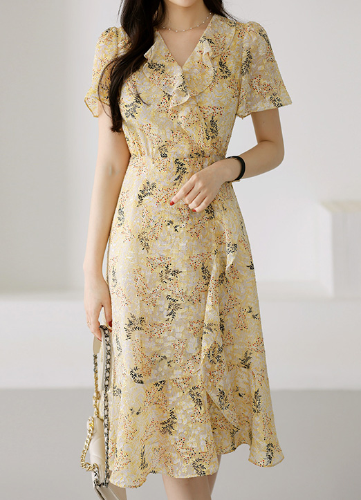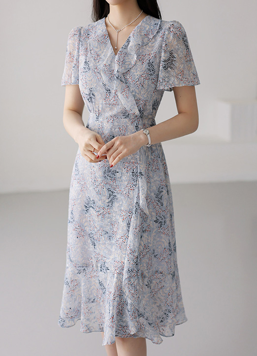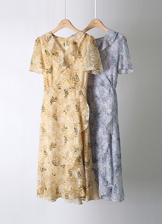 [LouisAngel] 돌체 언발 랩 러플 플레어 소매 플라워 원피스