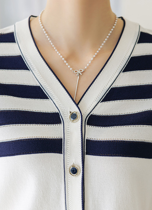 [Theonme] 라니온 비스코스 스트라이프 배색 라인 니트 가디건