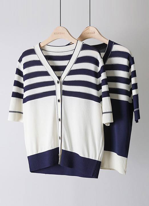 배색 라인으로 시원한 무드를 주며 탄탄하면서 부드러운 고퀄리티 가디건