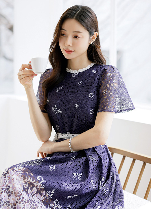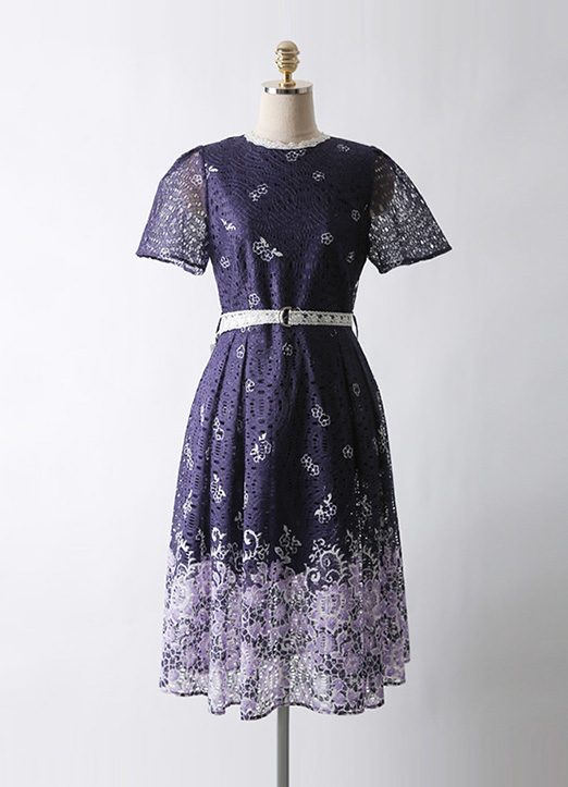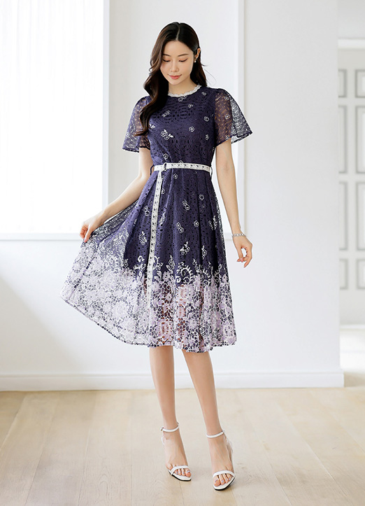 [LouisAngel] 쥬디트 꽃잎이 사르르 고혹적인 투톤 레이스 벨트SET A라인 플리츠 원피스