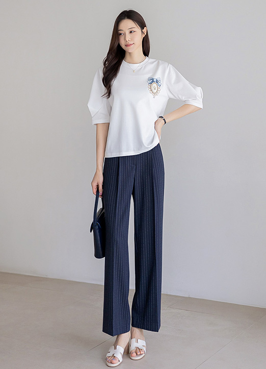 코튼 혼방 소재의 핀턱 소매 티셔츠에요 :)