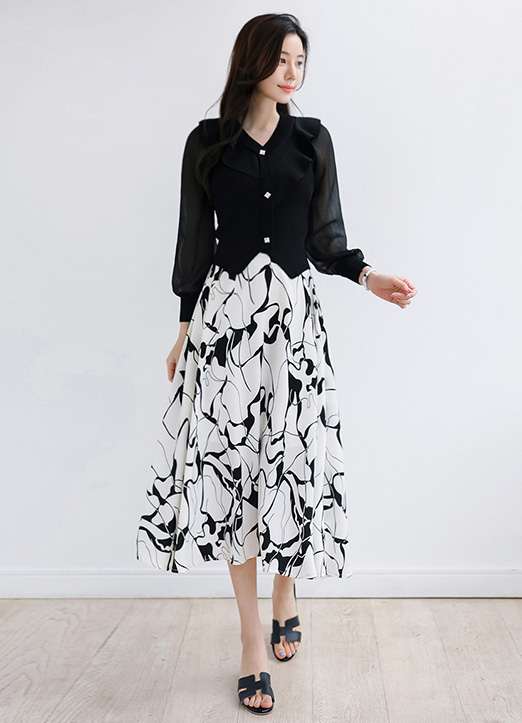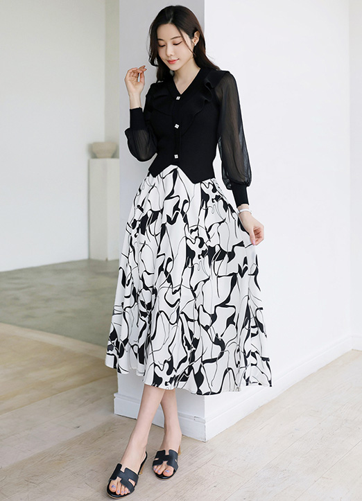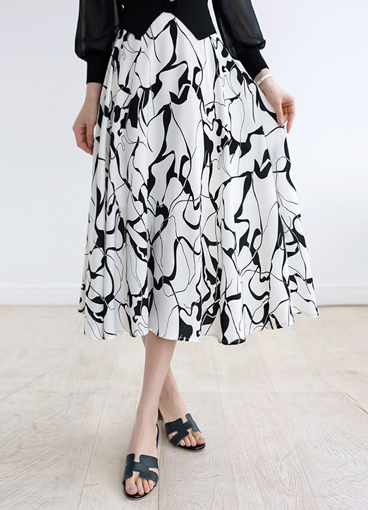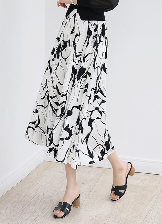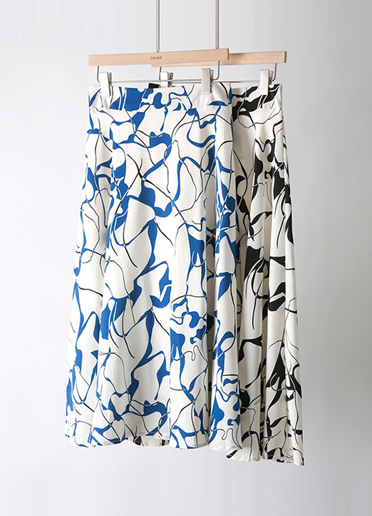 클라나 백밴딩 워터 드로잉 패턴 A라인 롱 플레어 스커트