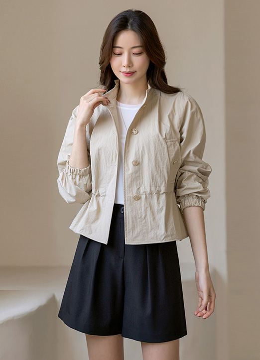 다네아 허리 스트링 바스락 미드 바람막이 사파리 점퍼