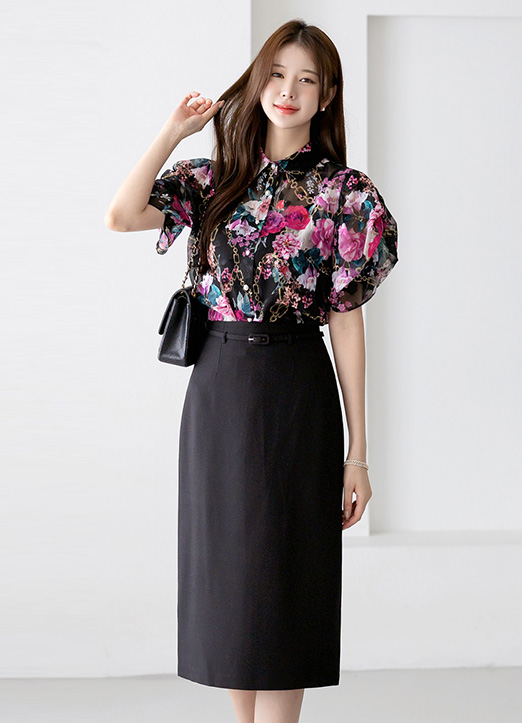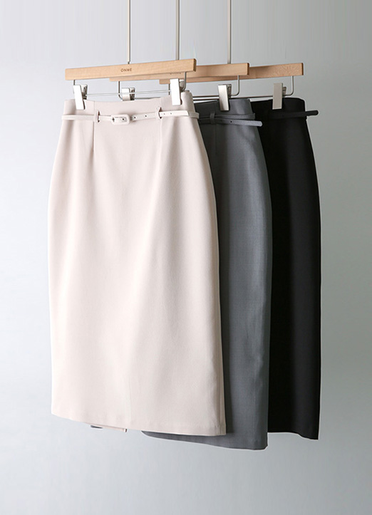 베로닌 모던 무드 틴 벨트SET H라인 미디 펜슬 스커트