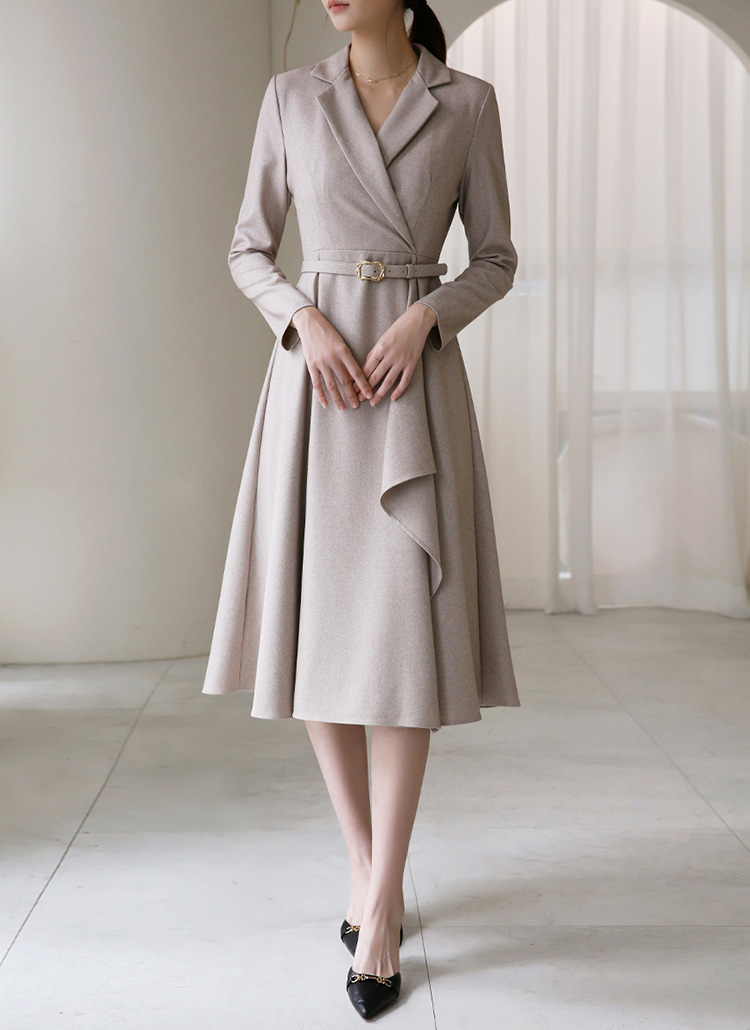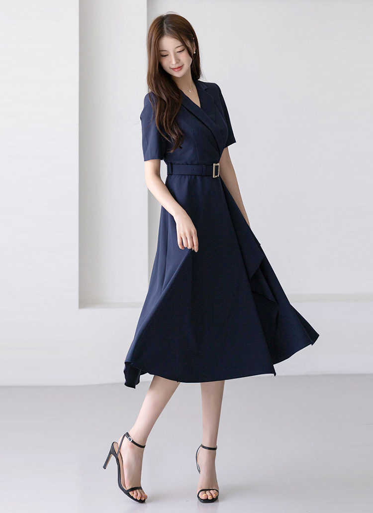 베리엔 시크모던 벨트SET 러플 랩 디자인 플레어 카라 원피스