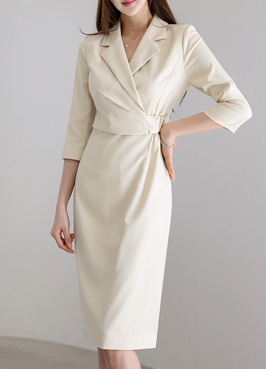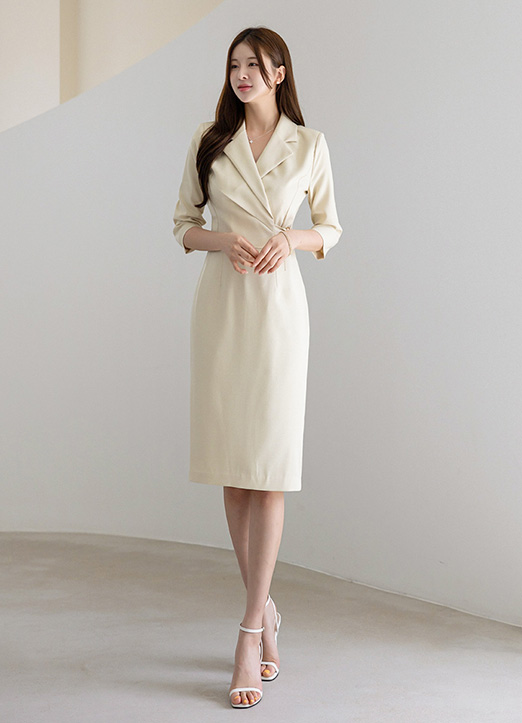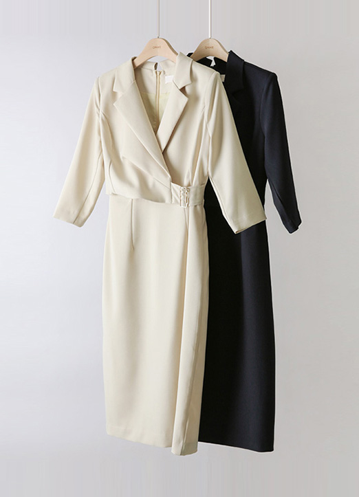 라디엔 모드 슬림 사이드 비조 버클 랩 디자인 카라 원피스
