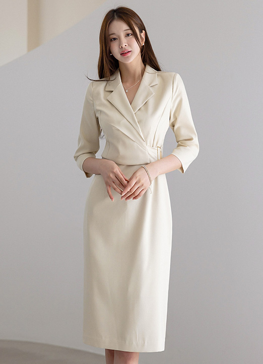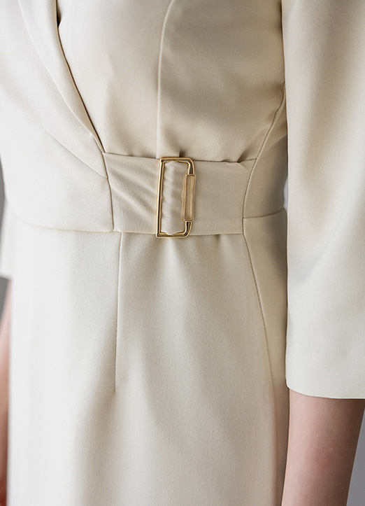 라디엔 모드 슬림 사이드 비조 버클 랩 디자인 카라 원피스