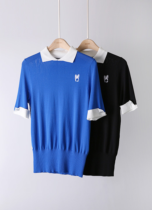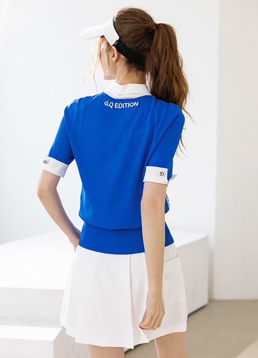 [QoG] 골프 기능성 비스코스 냉감 배색 롤업반팔 카라 니트_2color