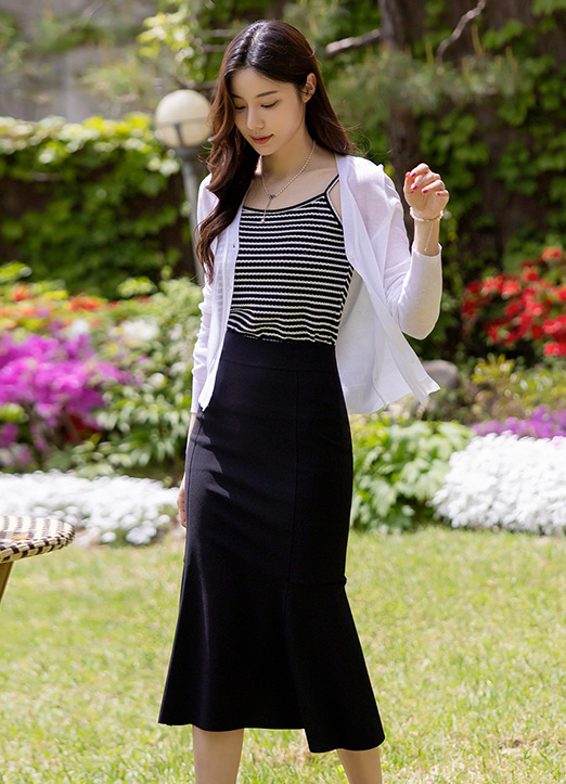 • 블리튼 쫀득 스판 슬림 머메이드 플레어 스커트