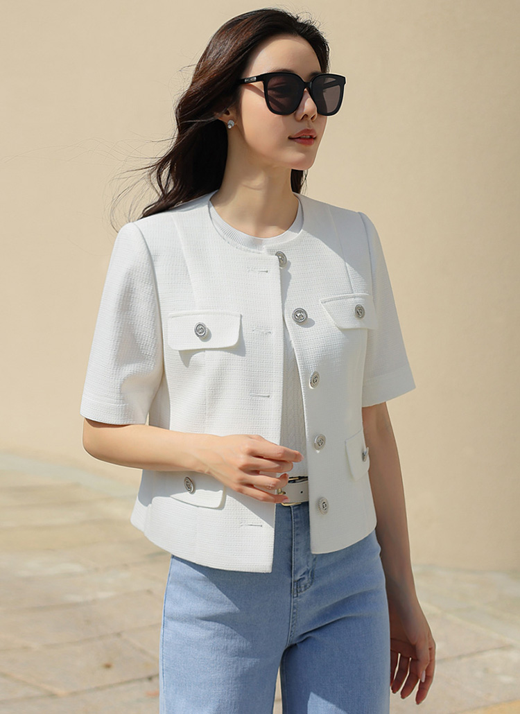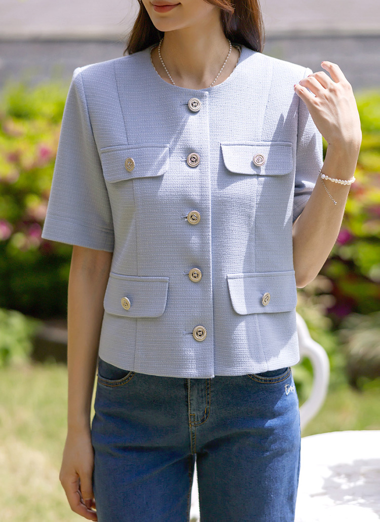 [LouisAngel] 리즈헨 쿨링 린넨라이크 노카라 썸머 트위드 자켓