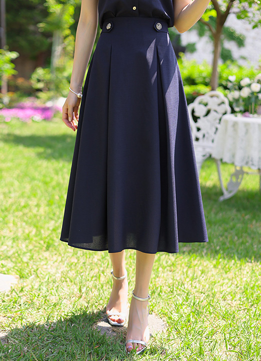 [LouisAngel] 블레스 사이드 비조 실버 버튼 맞주름 핀턱 플리츠 A라인 롱 스커트