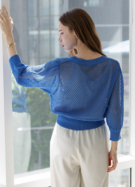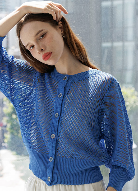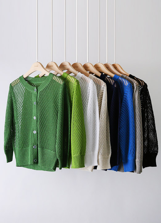 [Theonme] 어깨셔링 스카시 망사 니트 가디건_8color