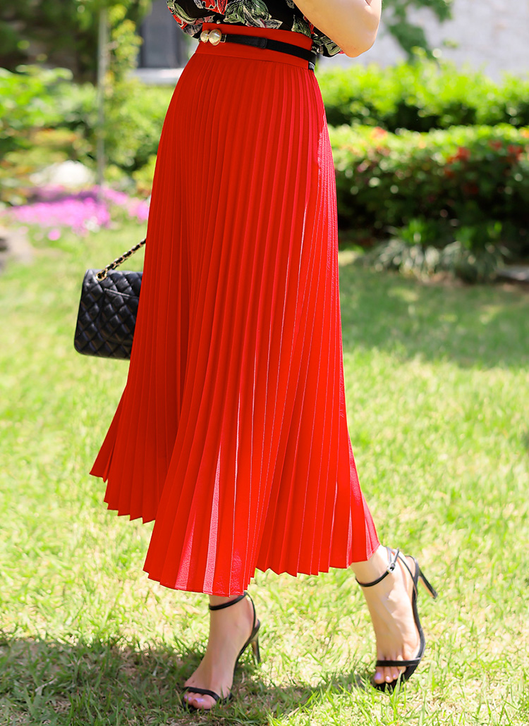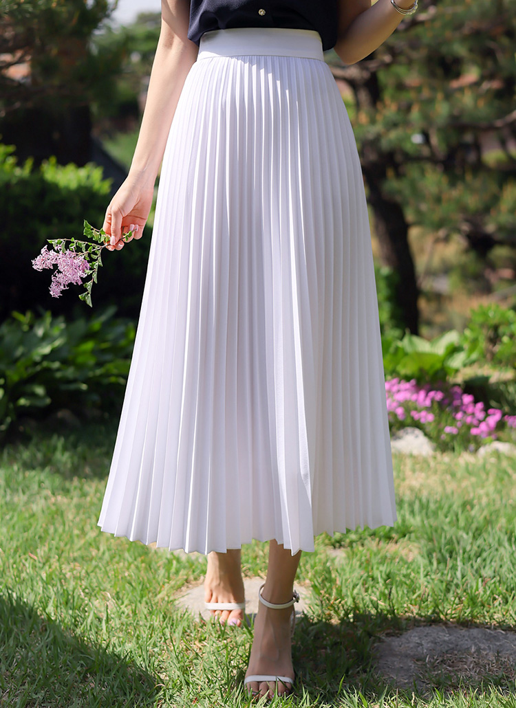 [LouisAngel] 로라엔 부드럽게 사락사락 펄실버라인 뒷밴딩 플리츠 롱 스커트