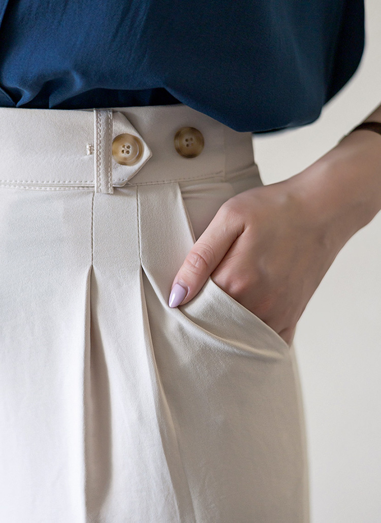 베이든 찰랑 핀턱 투버튼 랩 와이드 슬랙스