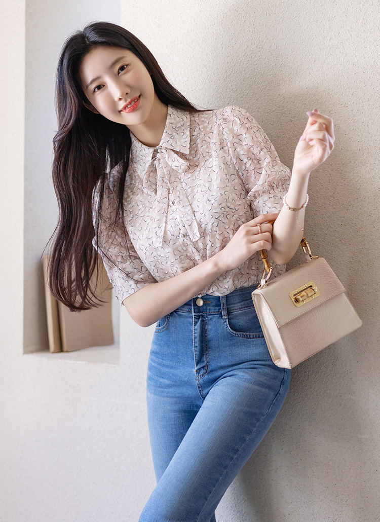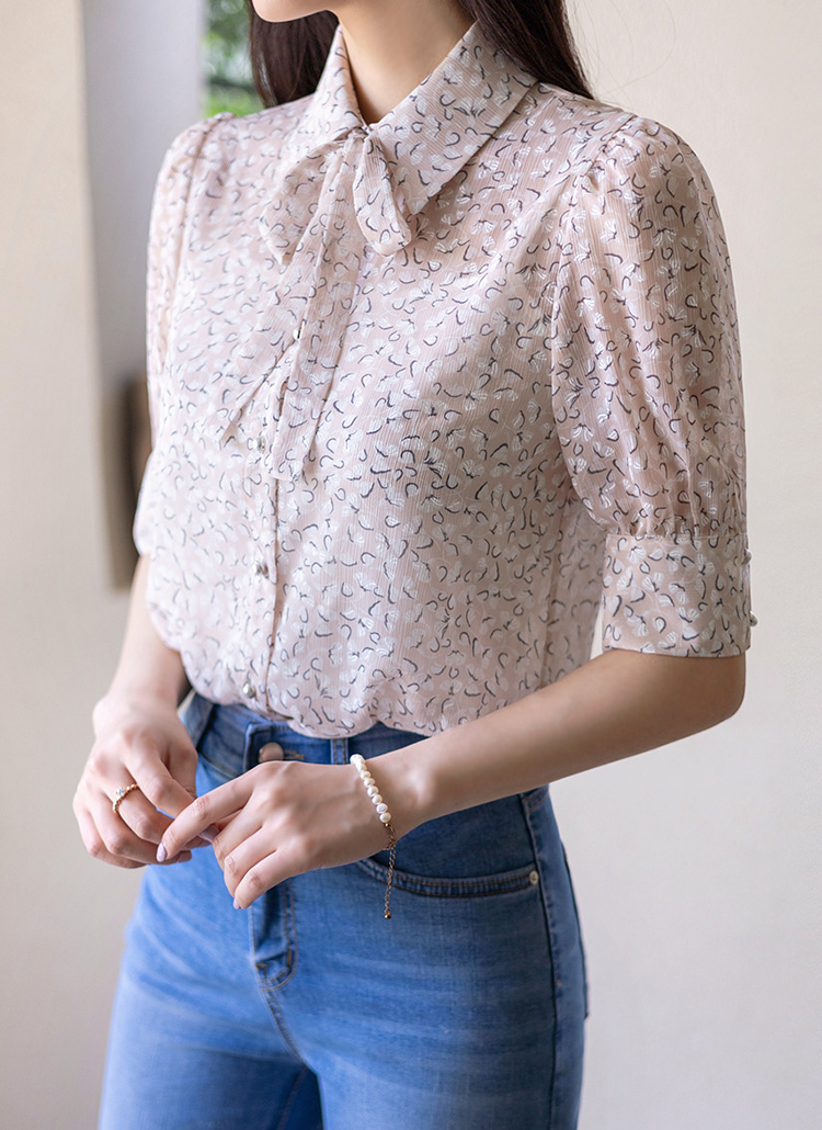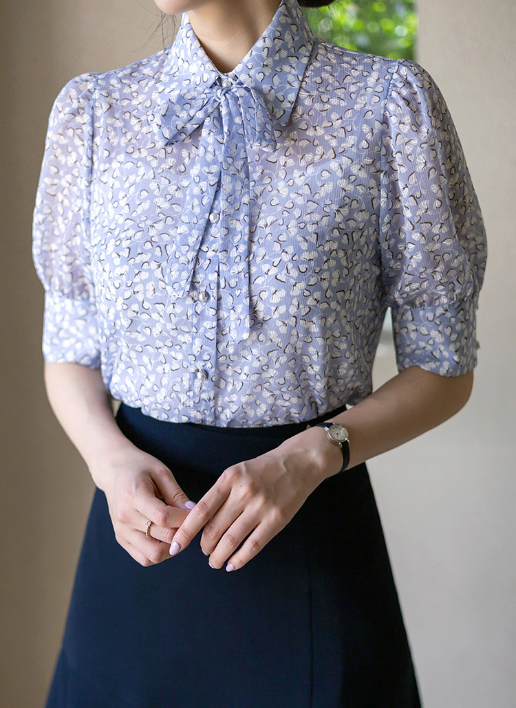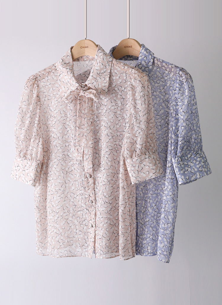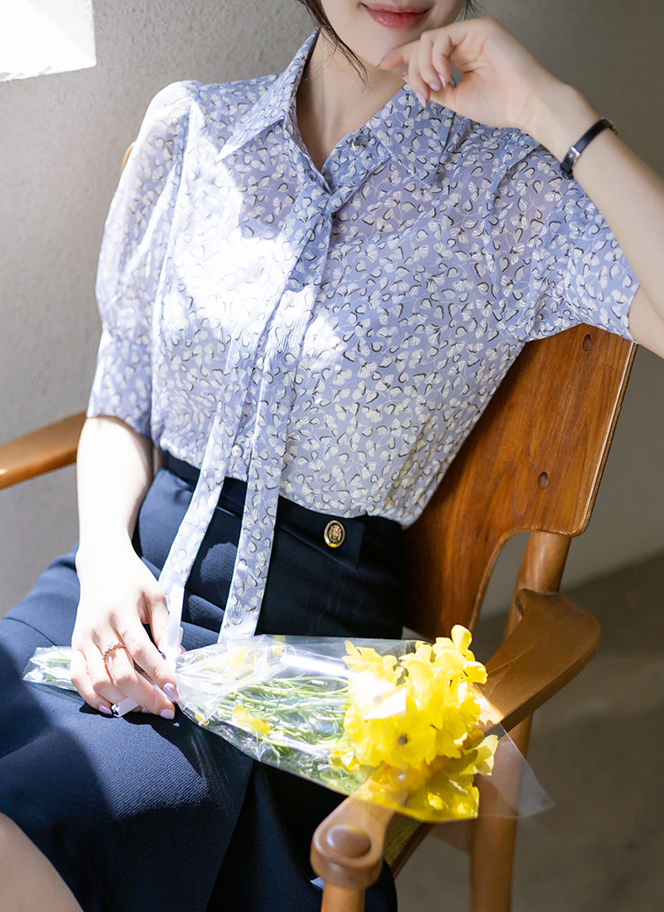 [LouisAngel] 꽃잎 패턴 타이SET 요루 쉬폰 퍼프 블라우스