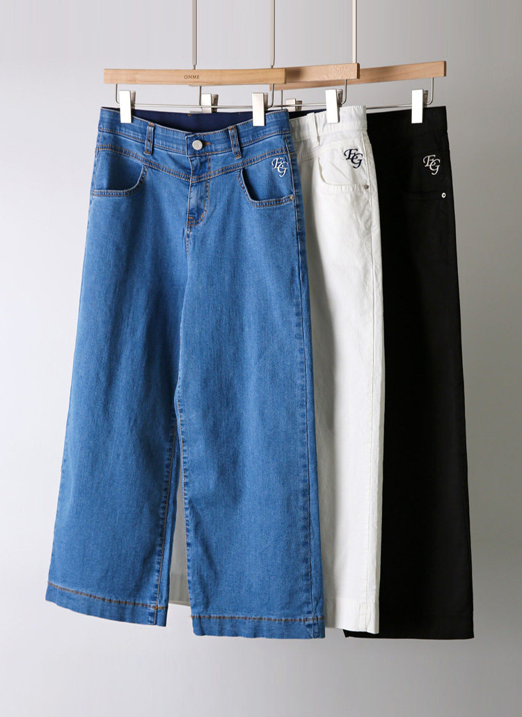 이지 포켓 자수 썸머 코튼 데님 와이드 8부 팬츠