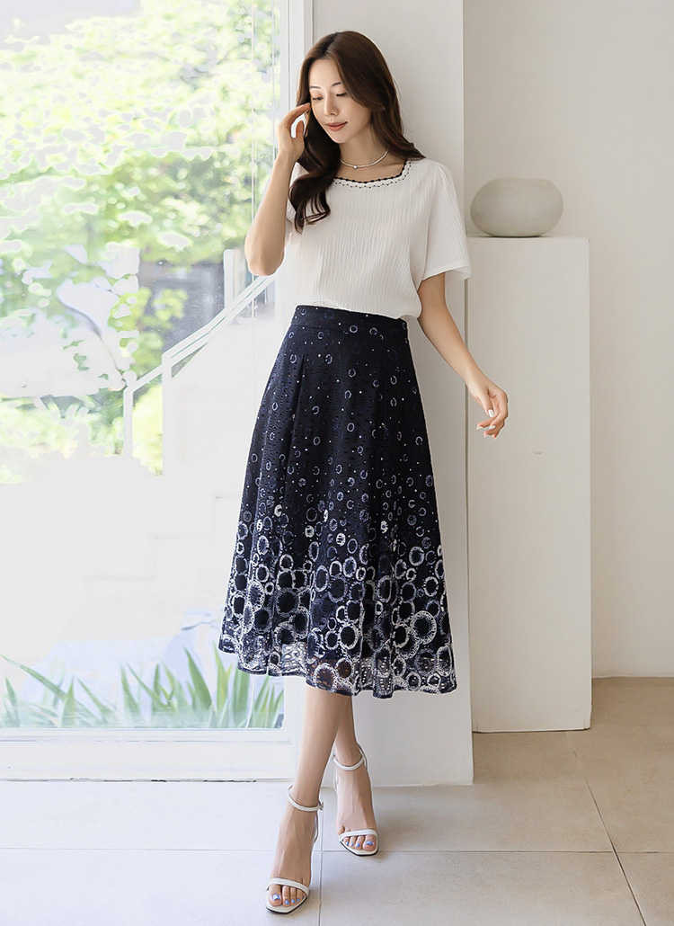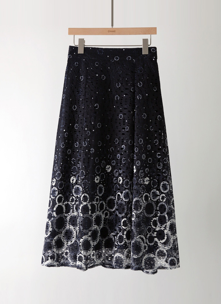 [LouisAngel] 써클 그라데이션 펀칭 레이스 핀턱 플레어 스커트