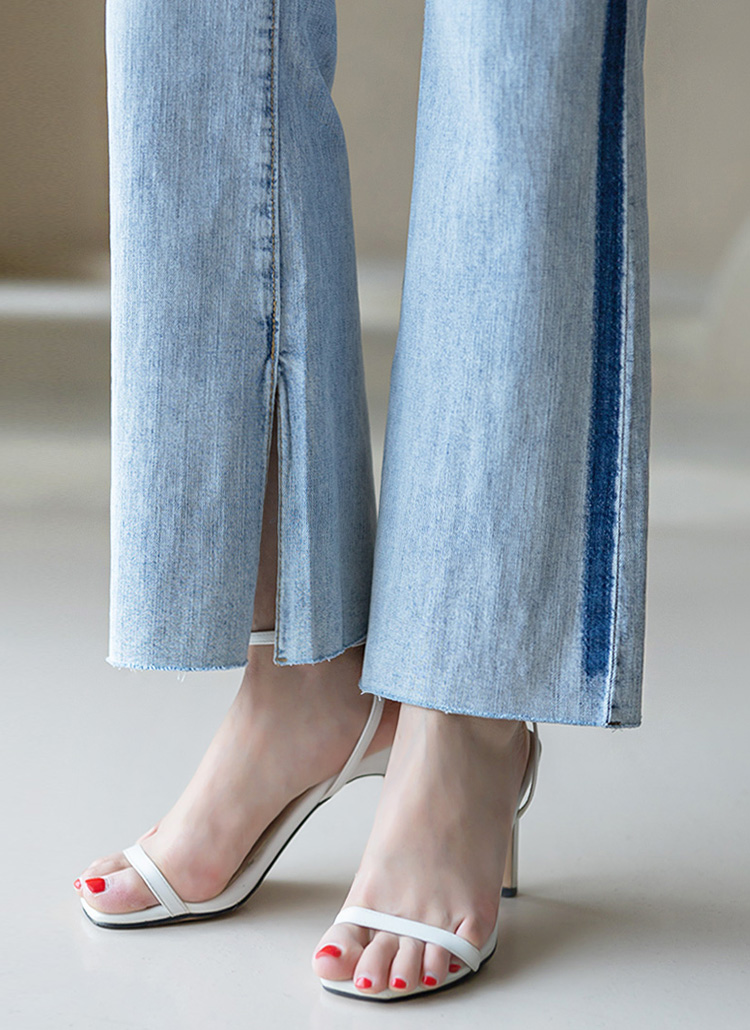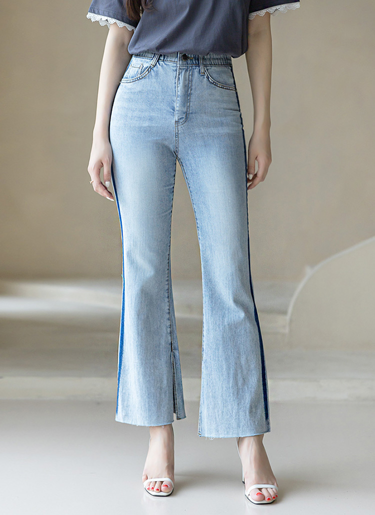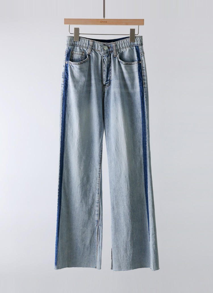 세련된 배색 워싱 트임 부츠컷 데님 팬츠