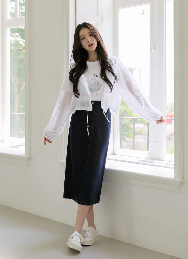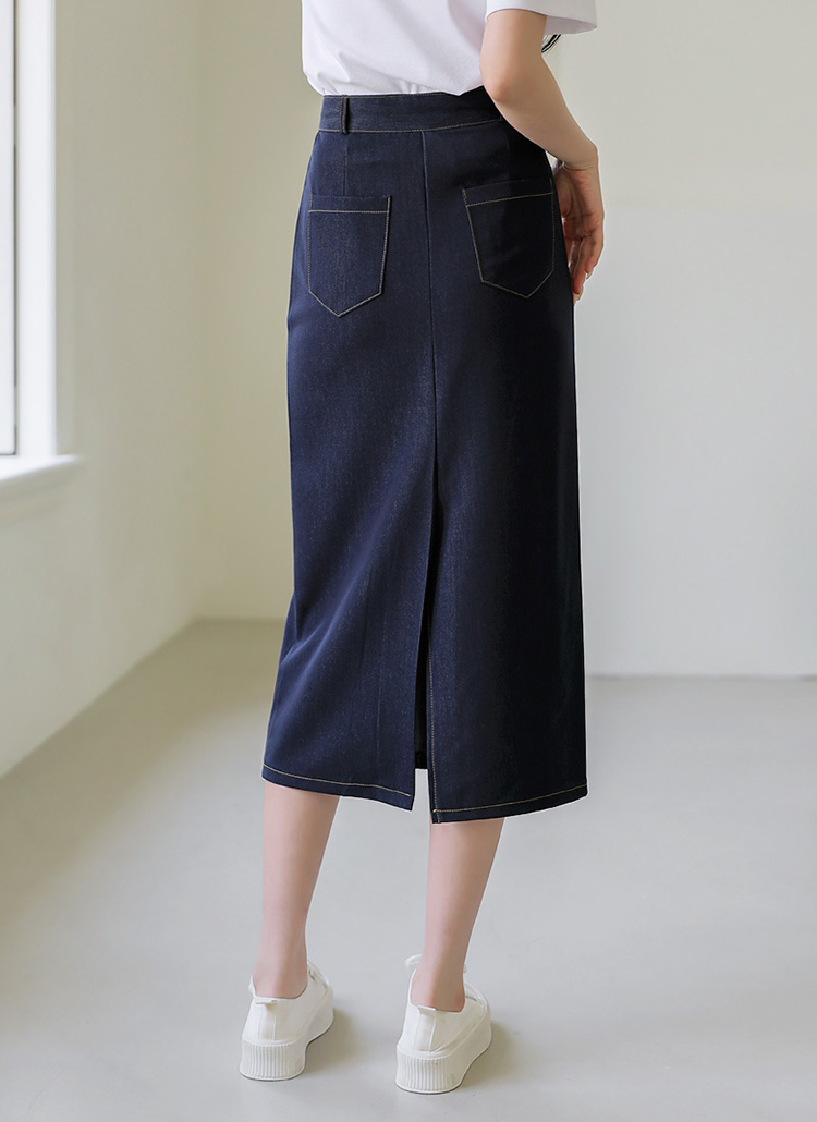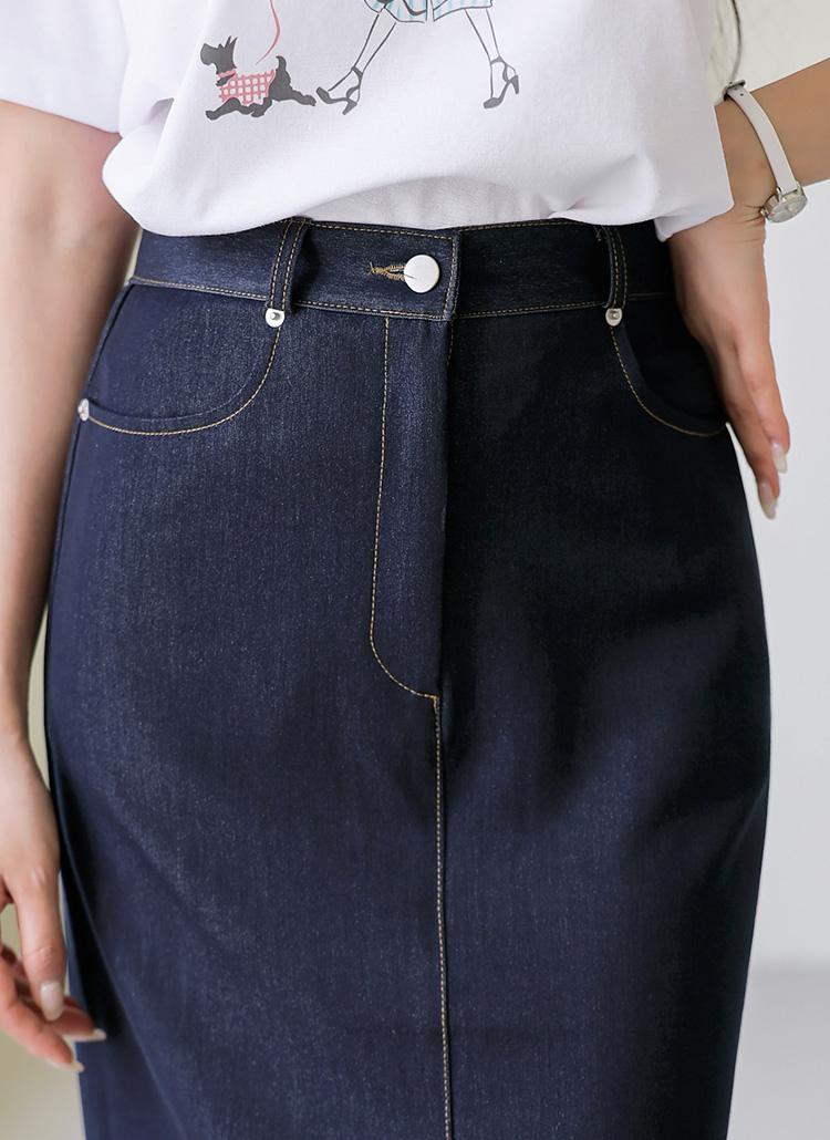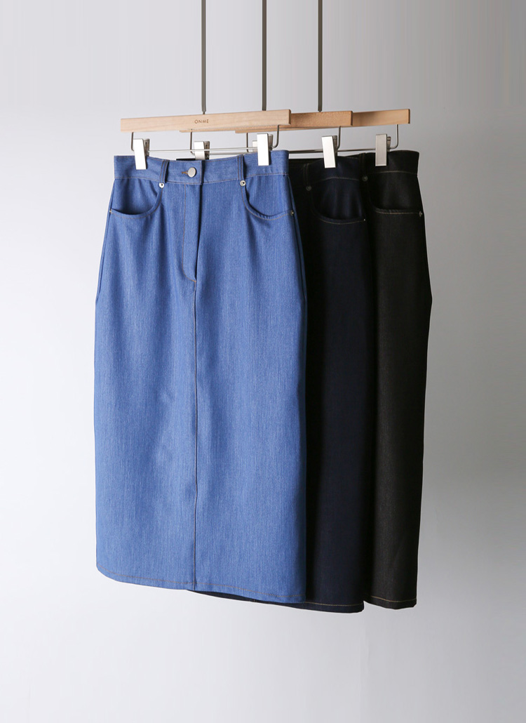 브리즈 가볍고 부드러운 폴리 데님 H라인 롱 스커트