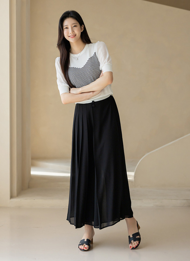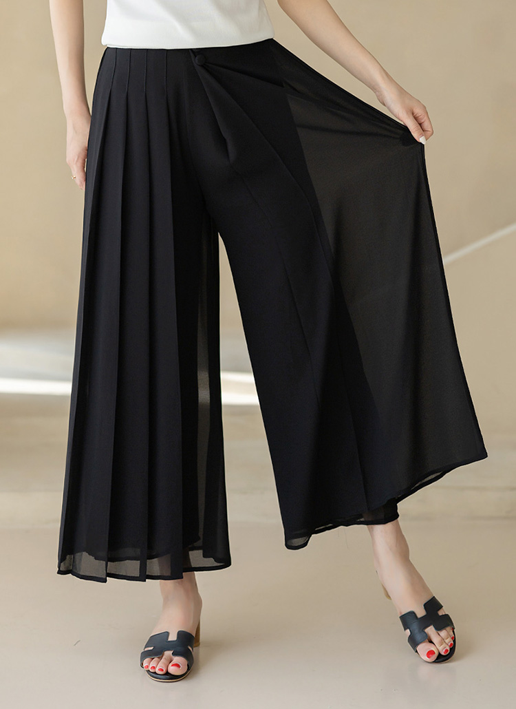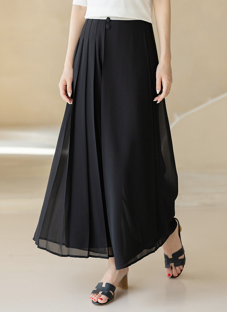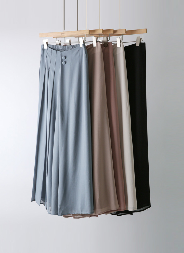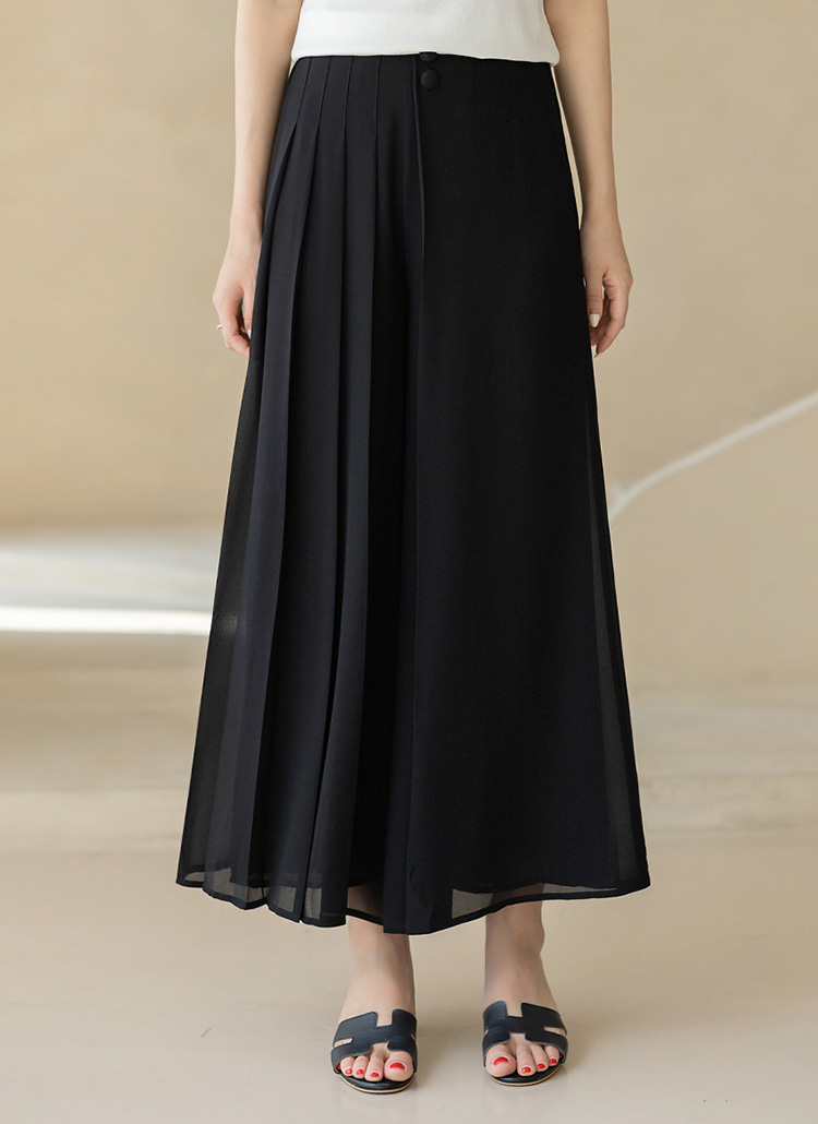하프 플리츠 쉬폰 랩 밴딩 와이드 치마바지